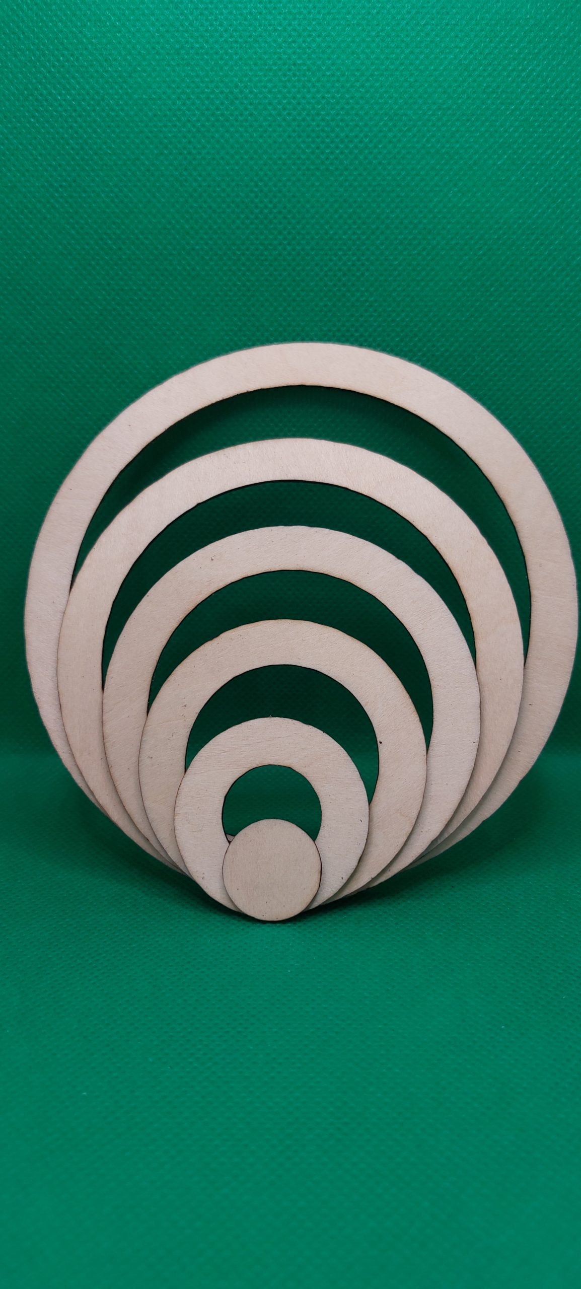 CARACTERÍSTICAS: Madera de balsa, no pesante, con una capa. Total 5 marcos. Cada círculo tiene las medidas de: 4cm, 6cm, 8cm, 10cm y 12cm. Circulo central incluido.